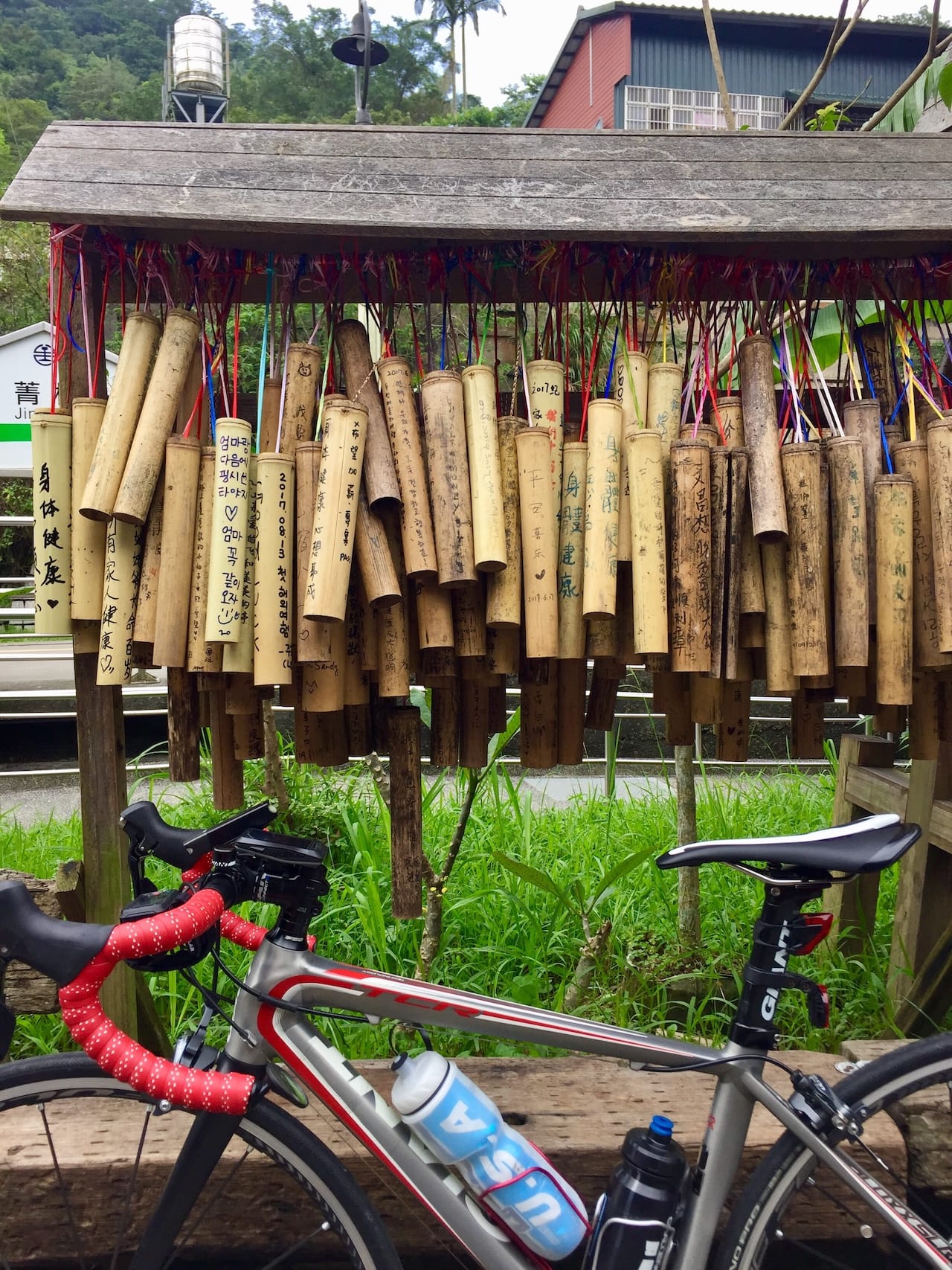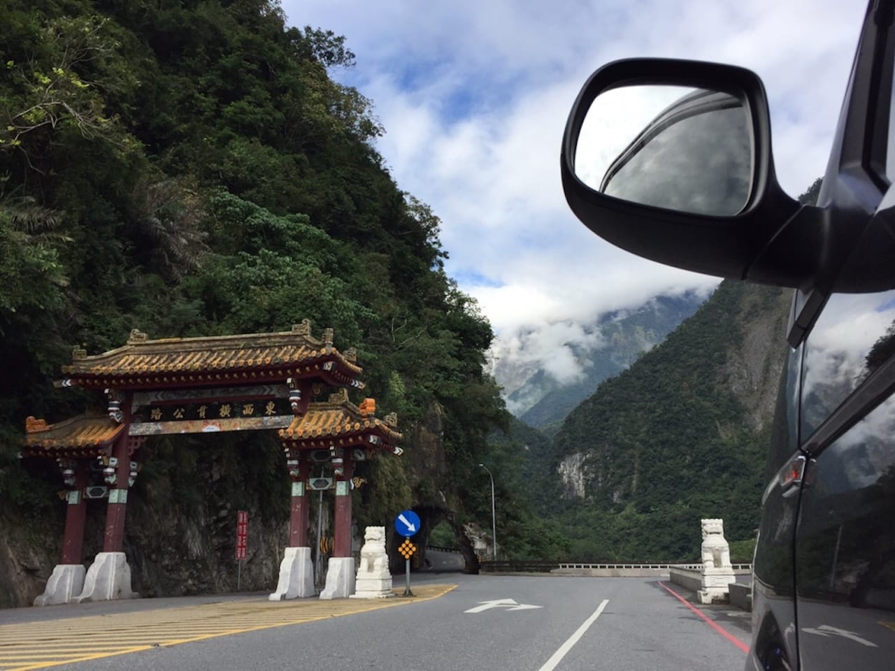 在起步前的安全檢查,隊友發覺他新購置的碟煞公路車的煞車系統失靈。這套是全新的 Shimano R8000 套件,新車使用個多月來都未見有不妥的地方。由於事態嚴重,大家決定放棄今天的騎乘,改為包車一日遊。先到中橫公路入口的大魯閣牌樓拍照,接著便到崇德海邊拍攝清水斷崖全景。