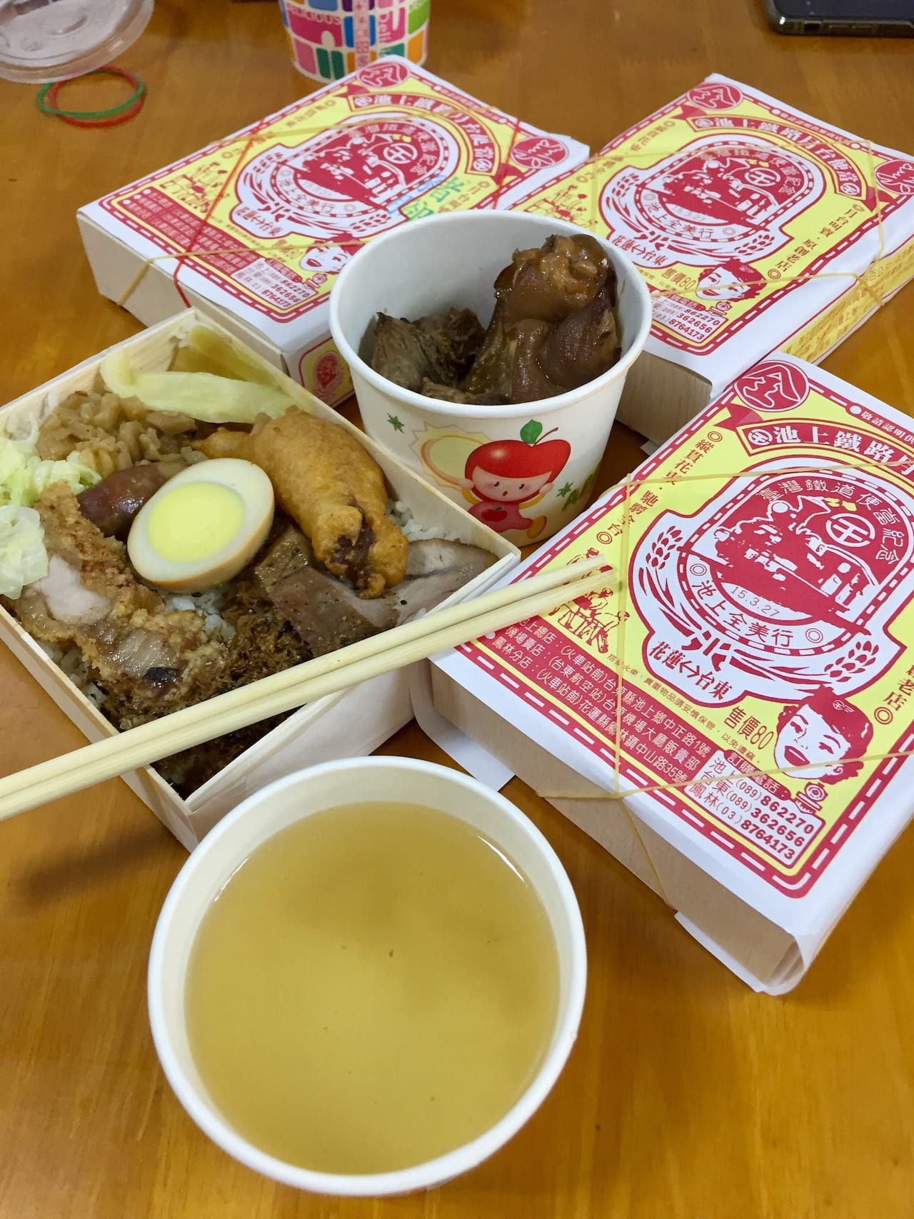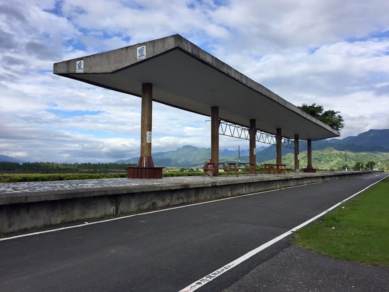 池上鄕的伯朗大道是被譽為”翠綠的天堂路“,兩傍是翠綠的稻田。在長達兩公里的小路上沒有一支燈柱,是騎車、拍照的好去處。奔跑了一會,到地標拍過照,便趕緊到池上鄕車站傍的老店吃個經典的池上飯包。